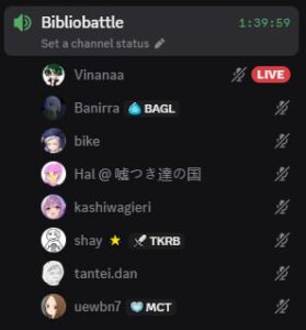 The first KAORI Nusantara Bibliobattle was held on 27 September 2025 at KAORI Nusantara’s Discord server. The event had a total of 9 participants, with 2 serving as duelists. The participants consist of the Indonesian Anime Times staff, KAORI Nusantara Newsline staff, and KAORI Nusantara Discord members.