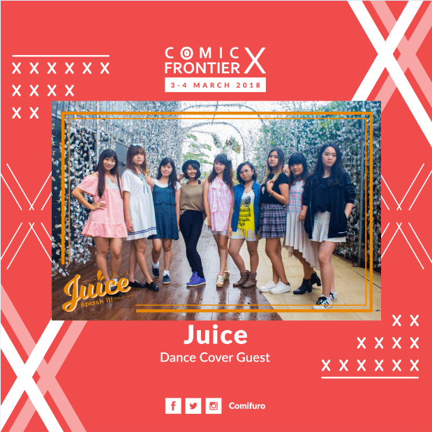 Comic Frontier selalu tumbuh bersama para komunitas kreatif yang ada di seluruh pelosok negeri dengan berbagai macam kreativitas tersendiri. Dalam acara kali ini, Comic Frontier X menghadirkan sejumlah komunitas kreatif untuk menunjukkan kreativitasnya di panggung utama. Salah satu komunitas kreatif yang hadir mengisi kemeriahan kreatif di acara ini adalah grup dance cover Juice! yang telah menorehkan prestasi dalam berbagai kompetisi dance cover di dalam negeri. Tidak hanya itu saja, Ellie sebagai perwakilan dari komunitas cosplay Bogor dan Yggdrassil Project bersama dengan Roulette akan membuat suasana semakin meriah di panggung utama Comifuro X juga akan menghadirkan semarak kreativitas di panggung utama Comic Frontier X.