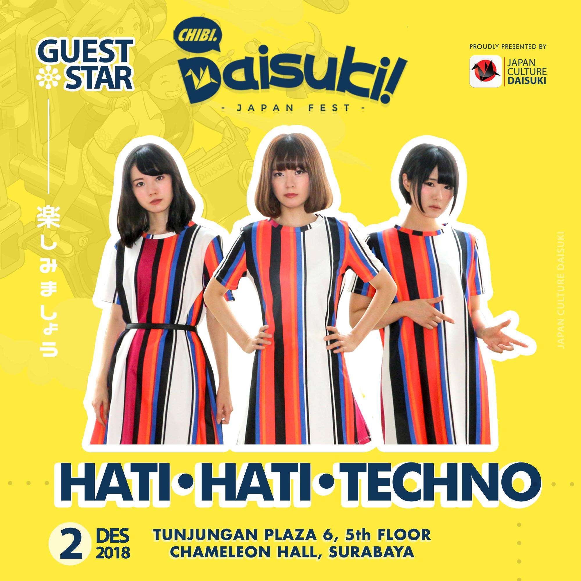 Bintang tamu yang datang di Chibi Daisuki juga dijamin membuat acara semakin meriah! Bagi Anda yang suka idol, Hati-Hati Techno, sub-unit dari Enka Girls akan siap menggoyang panggung acaranya. Selain itu, ada juga para guest cosplayer di sini yang akan membagikan pengalamannya di dunia cosplay Indonesia dalam sesi talkshow spesial. Mereka adalah Yukitora Keiji, Mayumi Reena, dan Nekonoi Katsu. Mereka bertiga sebelumnya pernah menjadi cosplayer yang tampil di perhelatan Tokyo Game Show. Selain mereka, ada juga tiga guest cosplayer ganteng yang siap menjadi juri lomba coswalk, mereka adalah Miho, Joca, dan Lee Gunawan.