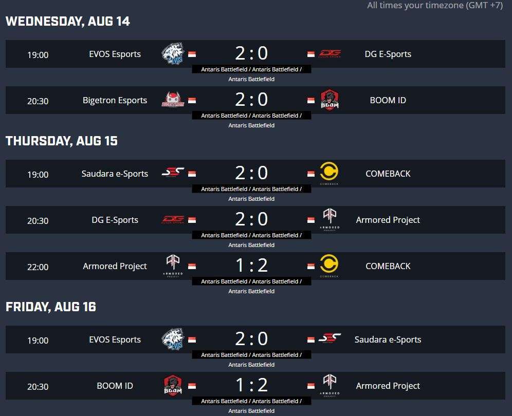COMEBACK, yang merupakan tim baru namun berisikan pemain-pemain lama yang sebelumnya bermain untuk RRQ dan GGWP, berhasil bertahan di posisi 4. Menariknya, meski tak berubah posisinya, COMEBACK hanya berhasil memenangkan 1 dari 3 pertandingan mereka di pekan ketiga ini. Mereka hanya berhasil menang melawan Armored Project dengan skor 2-1 namun kalah melawan Saudara e-Sports (0-2) dan DG E-Sports (1-2).