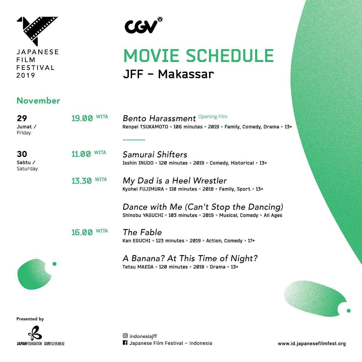 Line Up Japanese Film Festival 2019 Makassar