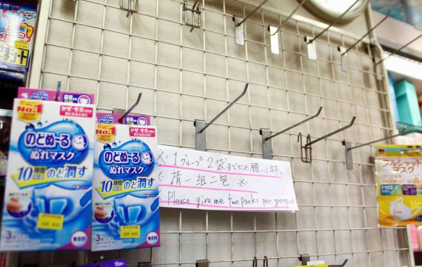 Dilansir dari Japan Times (7/2), sebuah apotek dekat Stasiun Shimbashi di pusat Tokyo memberikan peraturan untuk menjual masker kepada setiap pelanggan konsumen tidak lebih dari 2 kantong masker. Hal tersebut bertujuan untuk mencegah orang membeli dalam jumlah besar dan menjualnya kembali untuk mendapat keuntungan. Pihak toko sendiri berusaha untuk tetap memenuhi permintaan konsumen yang terus meningkat.
