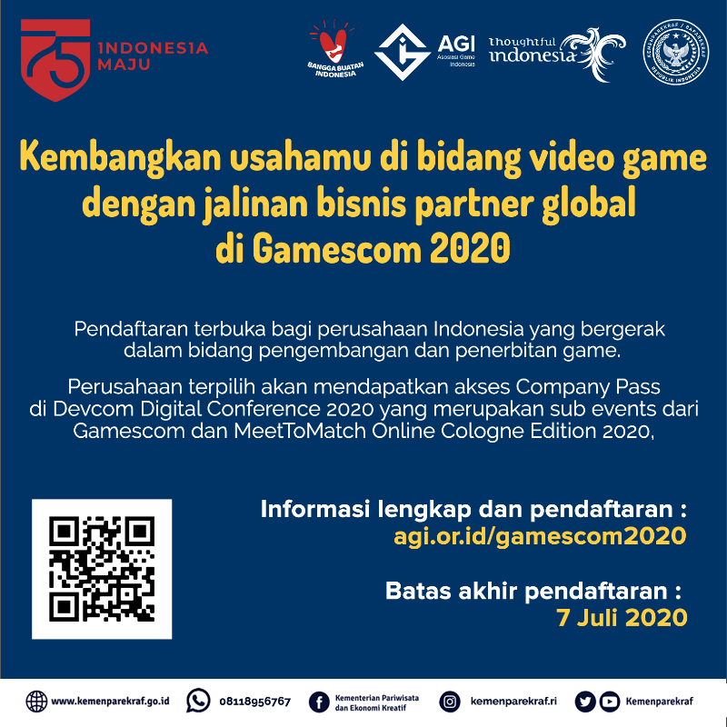 Informasi lebih lanjut mengenai ajang Gamescom 2020 ini bisa didapatkan di situs resmi https://gamescom.global dan https://devcom.global, atau dengan menghubungi contact@agi.or.id.