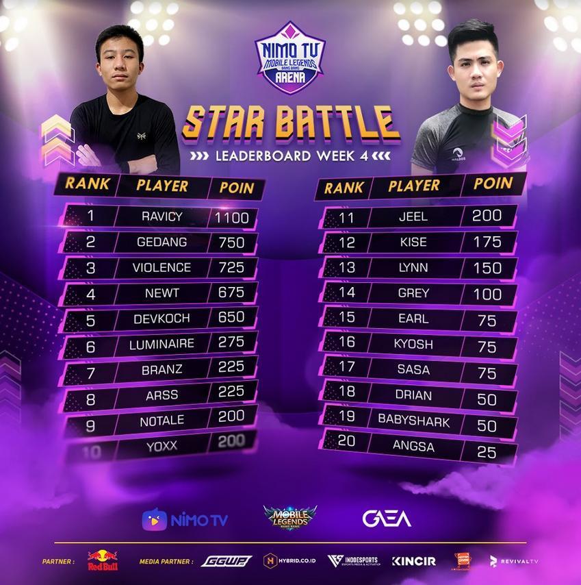 Setelah berjalan selama empat pekan, rangkaian acara Nimo TV Mobile legends: Bang Bang Arena (NMA) Star Battle akhirnya selesai digelar dan sang juara pun telah ditentukan.