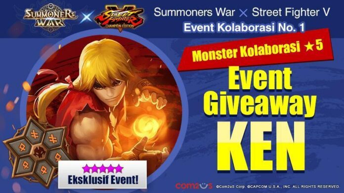 Com2uS (CEO James Song) mengumumkan bahwa Summoners War: Sky Arena (selanjutnya disebut Summoners War) telah merilis update kolaborasi bersama game fighting dari Capcom, yaitu 「Street Fighter V: Champion Edition」bersamaan dengan berbagai event, termasuk giveaway KEN pada tanggal 1 September 2020.