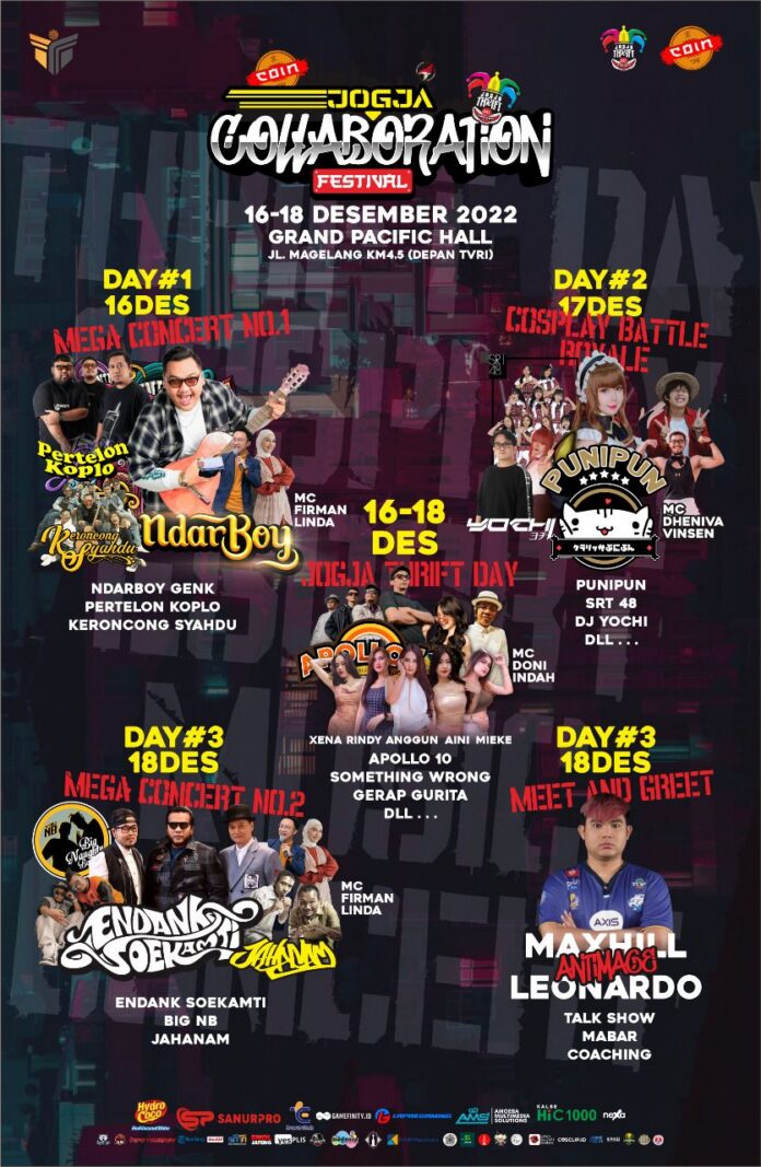 Festival yang diadakan 17-18 Desember 2022 di Grand Pacific Hall, Yogyakarta ini mengajak para pecinta cosplay dapat merasakan sensasi kompetisi yang berbeda. Cosplay Battle Royale – cosplay parade dengan durasi yang lebih lama sehingga para cosplayer dituntut untuk tampil lebih maksimal dan tentunya dinilai langsung oleh para juri profesional di bidangnya Clarissa Punipun, John Switch, dan Dharma Setiawan. Ada pula acara coswalk seperti pada umumnya dengan juri yang tidak kalah mumpuni, yakni Anizu chie, Takashinreisa, Pandapan dan Recca. Selain itu, masih ada fun photo hunt untuk seluruh pengunjung acara yang mengabadikan keseruan acara! Para peserta lomba dapat langsung menghubungi Zizo selaku contact person lomba di 082165946524.