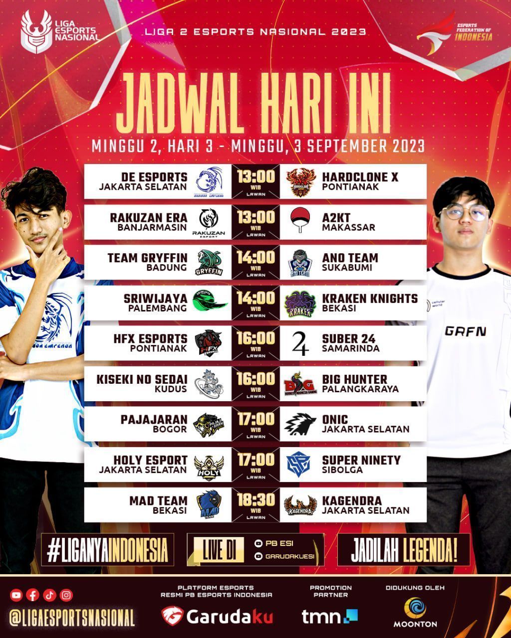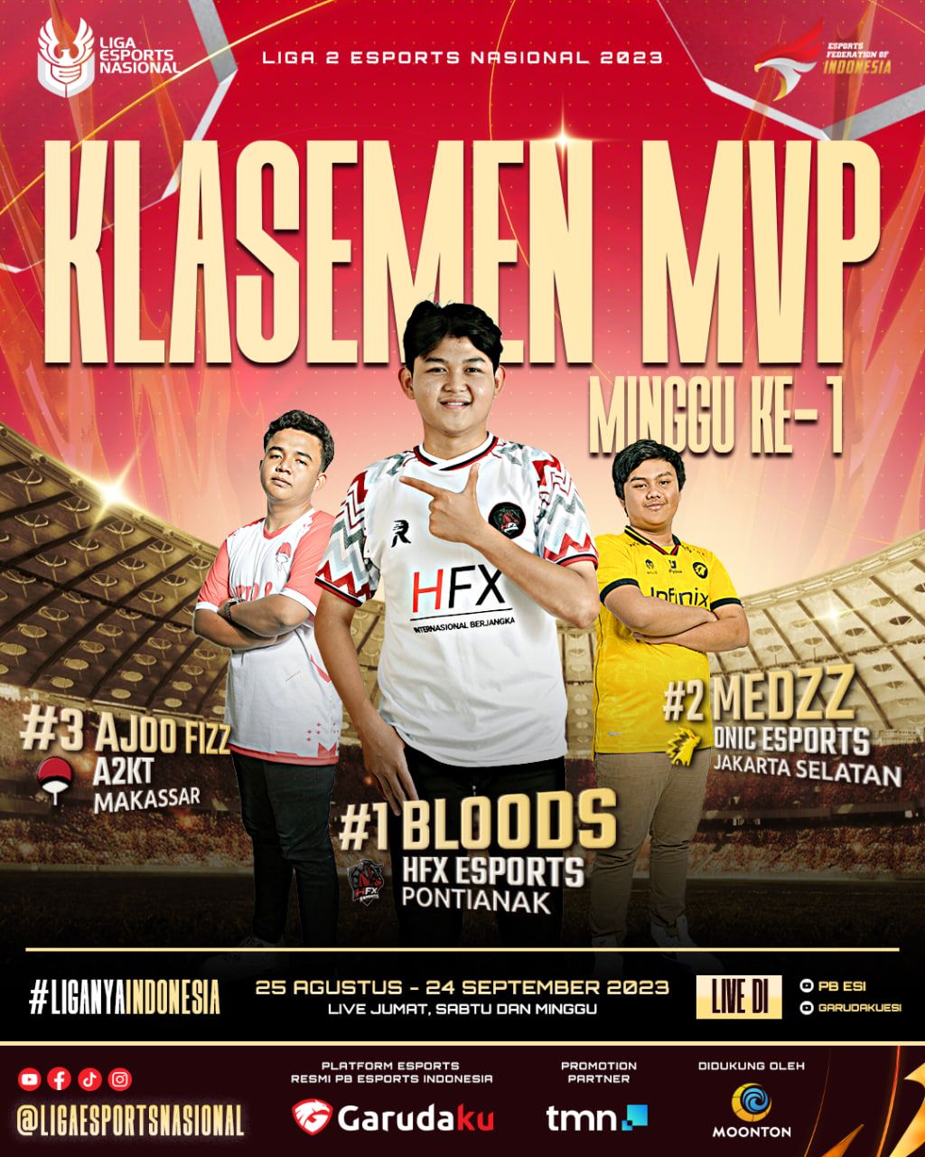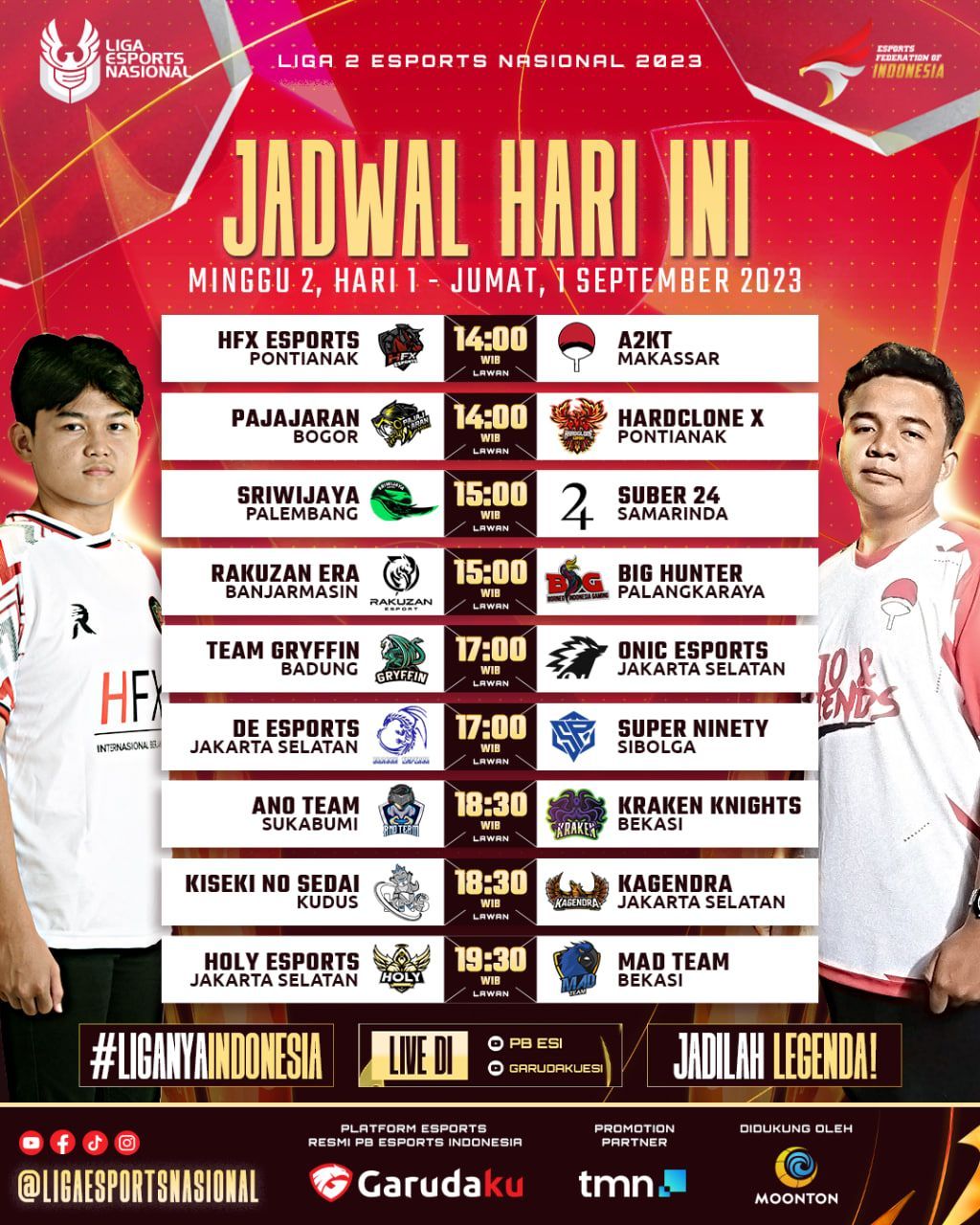 Untuk jadwal sendiri di Minggu ke dua akan tersaji pertandingan pertandingan yang sangat menarik, mulai dari pertarungan panas di puncak klasemen, HFX Pontianak yang akan kembali menjalani ujiannya, dan pastinya persaingan di papan tengah yang akan semakin seru karena tiap tim sudah harus beradaptasi dengan jadwal dan iklim kompetisi yang ketat ini.