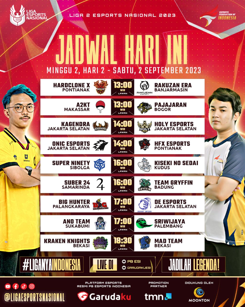 Semua pertandingan Liga 2 Esports Nasional akan ditayangkan secara langsung di Youtube Garudaku