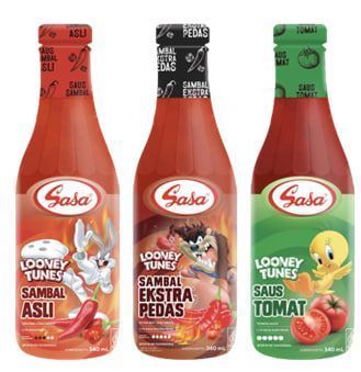Kemasan karakter spesial Looney Tunes untuk Sasa Sambal tersedia dalam tiga varian rasa, yaitu Sasa Sambal Asli, Sasa Sambal Ekstra Pedas, dan Sasa Saus Tomat. Kemasan ini menampilkan karakter-karakter Looney Tunes yang ikonik, seperti Bugs Bunny yang hadir dengan seragam karate di botol Sasa Sambal Asli dengan rasa pedas yang pas dilengkapi dengan aroma bawang putih, Sasa Sambal Ekstra Pedas dengan karakter Tasmanian Devil (Taz) mewakili rasa sensasi pedas yang berani, serta Karakter Tweety pada kemasan botol Sasa Saus Tomat, cocok untuk menemani pecinta saus rasa asam manis yang disukai oleh keluarga. Ketiga kemasan ini juga dilengkapi dengan desain yang ceria dan menarik, sehingga dapat menjadi pelengkap yang sempurna di meja makan.