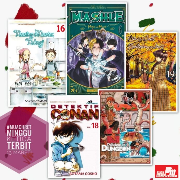 Melalui akun media sosialnya, penerbit Elex Media Komputindo memberikan bocoran mengenai sejumlah komik yang rencananya akan diterbitkan pada minggu kedua bulan Maret 2024. Beberapa judul ada yang merupakan seri atau volume baru ataupun seri yang diterbitkan ulang. Jika tidak ada halangan, maka komik-komik ini akan terbit pada 13 Maret 2024. Inilah bocoran komik Maret 2024 (minggu kedua):