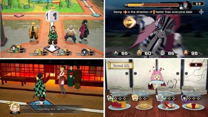Nikmati petualangan meja digital dalam dunia Demon Slayer: Kimetsu no Yaiba! Tempat-tempat terkenal dari anime Demon Slayer: Kimetsu no Yaiba, seperti Gunung Fujikasane, Asakusa, Kereta Mugen, dan Desa Pembuat Pedang, akan hadir di papan permainan! Pilihlah pedang Demon-Slayer favorit kalian dan gunakan Slayer’s Dice mereka! Mainkan sebagai Tanjiro Kamado, Zenitsu Agatsuma, Inosuke Hashibira, atau salah satu dari sembilan Hashira. Setiap pedang Demon-Slayer memiliki Slayer’s Dice mereka sendiri yang memberikan efek kuat yang unik untuk setiap anggota. Setelah digunakan, dibutuhkan tiga giliran sebelum bisa digunakan lagi, jadi pastikan memilih waktu yang tepat untuk memaksimalkan efeknya. Jika pedang Demon-Slayer lain menjadi sekutu kalian, kalian dapat menggunakan Slayer’s Dice mereka juga, selain menggunakan milik kalian sendiri. Hadapi berbagai minigame! Seiring berjalannya permainan, pemain akan berpartisipasi dalam berbagai minigame, mulai dari pertempuran bebas 4 pemain hingga pertarungan tim 2 lawan 2. Pada malam hari, iblis – termasuk musuh kuat seperti Akaza dan Hantengu – akan muncul di beberapa petak, memungkinkan kalian untuk menantang mereka dalam minigame berbasis pertempuran. Kocok Joy-Con™ kalian dan hadapilah mereka sebagai tim 4 pemain.