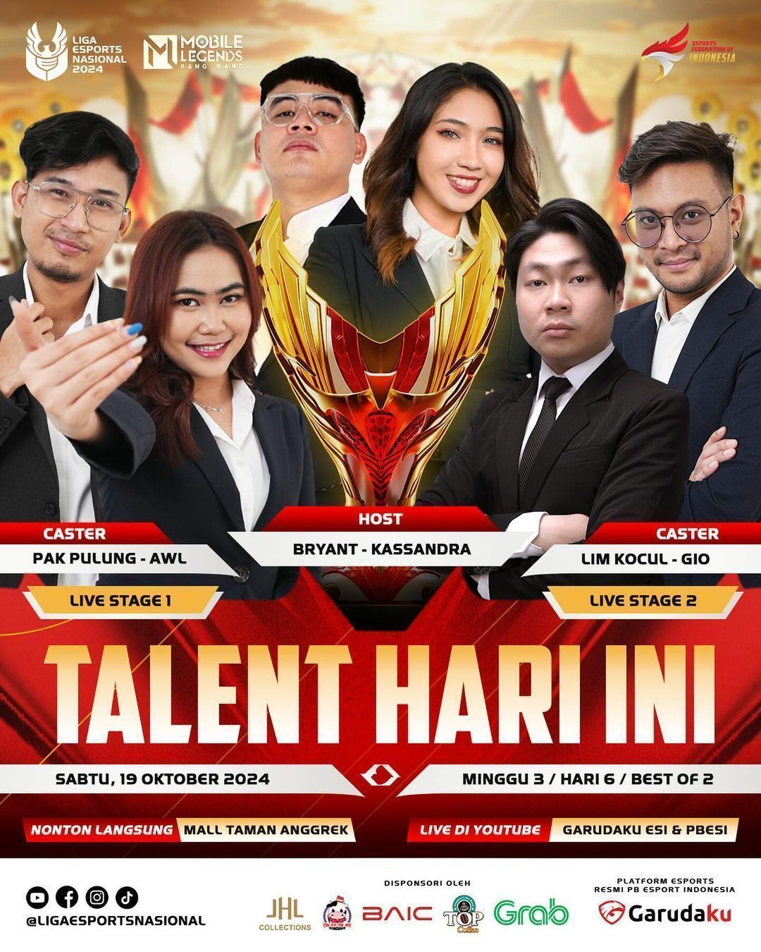 Pertandingan ini akan berlangsung di Mall Taman Anggrek, Jakarta, dan dapat disaksikan secara langsung maupun melalui live streaming di platform YouTube dan Garudaku ESI. Dua panggung besar akan dipandu oleh caster berpengalaman seperti Lim Kocul, Gio, Pak Pulung, dan AWL, dengan Bryant dan Kassandra sebagai host.