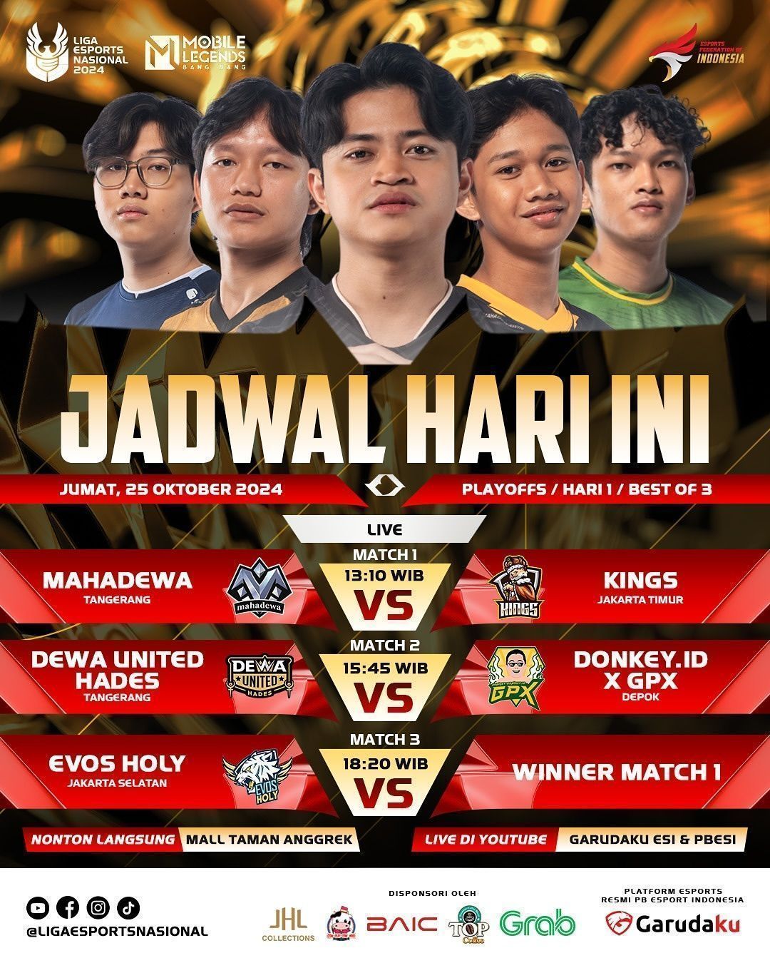 Dengan host dan caster berpengalaman ini, playoff hari pertama Liga 1 Esports Nasional tidak hanya akan menjadi ajang kompetisi yang seru, tetapi juga pertunjukan yang tak terlupakan bagi semua penggemar esports di Indonesia.