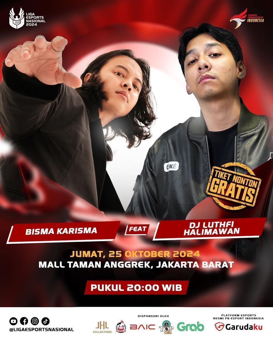 Tak hanya pertandingan yang menegangkan, pengunjung Mall Taman Anggrek juga akan dihibur dengan penampilan spesial dari musisi ternama Bisma Karisma dan DJ Luthfi Halimawan yang akan tampil mulai pukul 20:00 WIB. Penampilan mereka akan menjadi hiburan penutup yang sempurna setelah seharian penuh menikmati aksi esports kelas dunia.