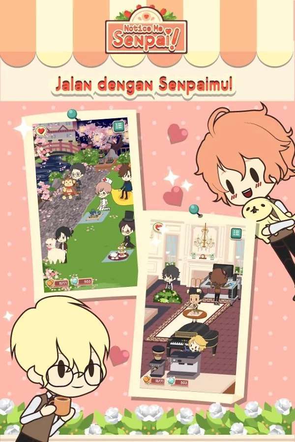 Mulailah kisah cinta di kafemu sekarang! Kumpulkan dan berinteraksilah dengan senpai favoritmu. Dalam ‘Notice Me Senpai’, kamu akan berperan sebagai murid perempuan pertama di sebuah sekolah swasta elit khusus laki-laki. Kamu akan bekerja di sebuah kafe yang terletak di bangunan siswa kelas tiga untuk membantu membayar uang sekolahmu. Kamu menarik pelanggan dengan cara mengkombinasikan kopi dan dekorasi. Sambil mengelola kafe, kamu juga akan bertemu dengan berbagai macam Ikemen senpai (kakak kelas atau senior). Mulai dari kutu buku, atlit olahraga, sampai idol terkenal, sekolah ini memiliki segalanya. Bisakah kamu membuat mereka semua jatuh cinta padamu?