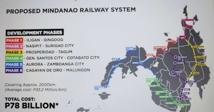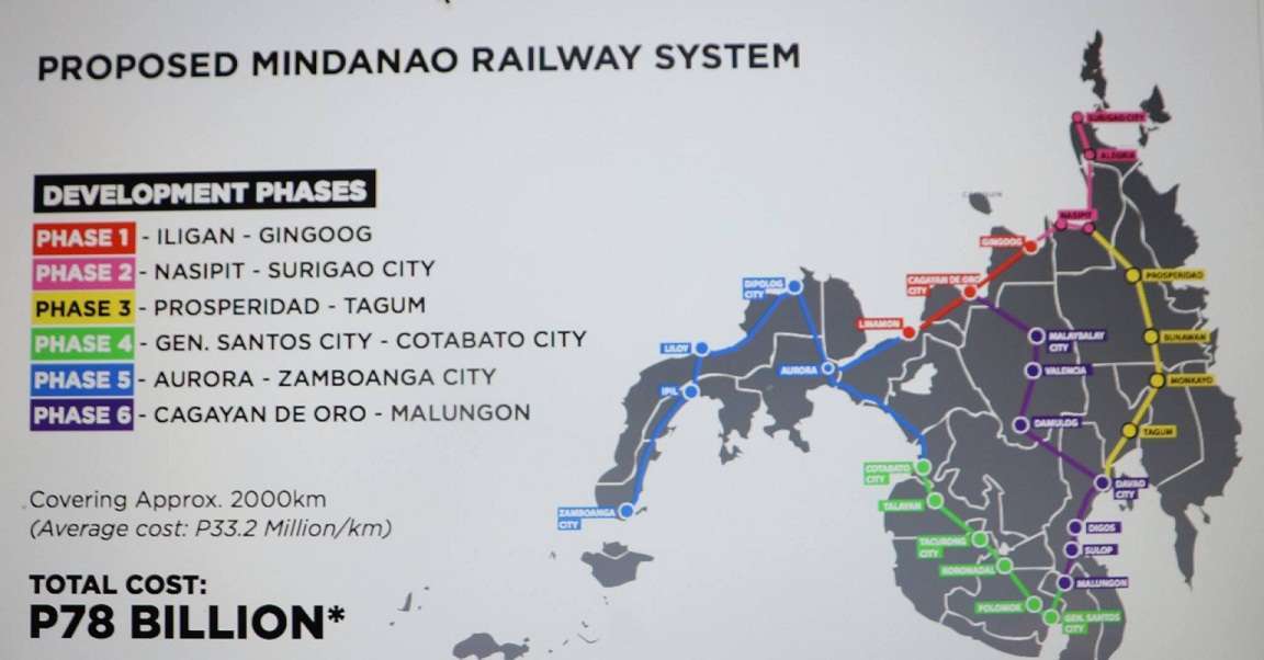 Pada tahap pertama, sistem perkeretaapian di Mindanao akan menghubungkan beberapa kota seperti Tagum, Davao, dan Digos yang terletak di Provinsi Davao del Sur. Rencana pembangunan jalur KA sepanjang 2,000 km di Fiiipina juga akan menghubungkan wilayah-wilayah seperti Cagayan de Oro, Iligan, Zamboanga, Butuan, Surigao, dan General Santos.