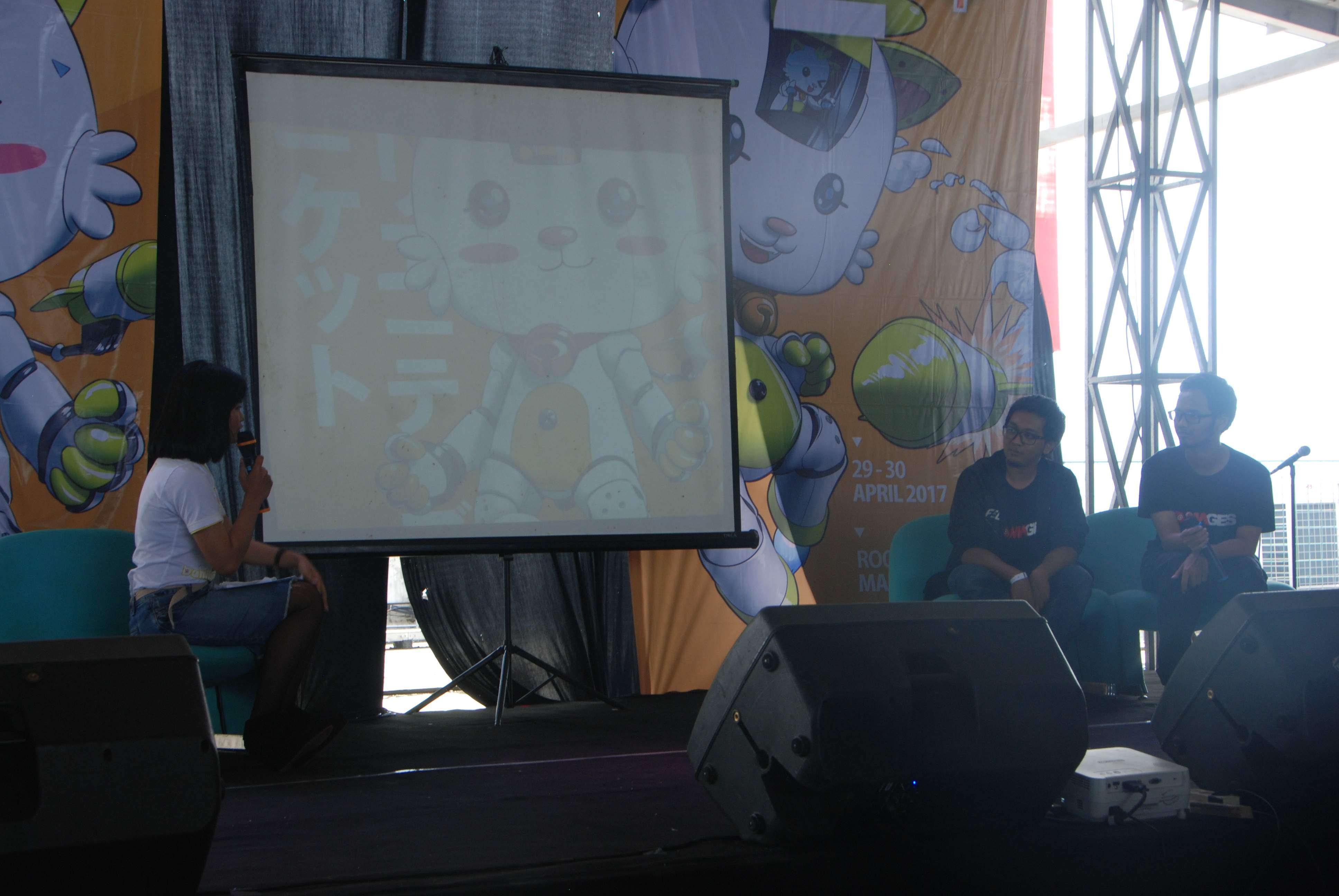 Selanjutnya ada sesi bincang – bincang dengan keempat guest creator. Mereka menjawab beberapa pertanyaan yang MC tanyakan dengan bergantian dengan urutan penjawab mulai dari Maulana Faris, wakil dari Magesoft, Papang Jakfar, dan diakhiri dengan Akhmad Fadly.