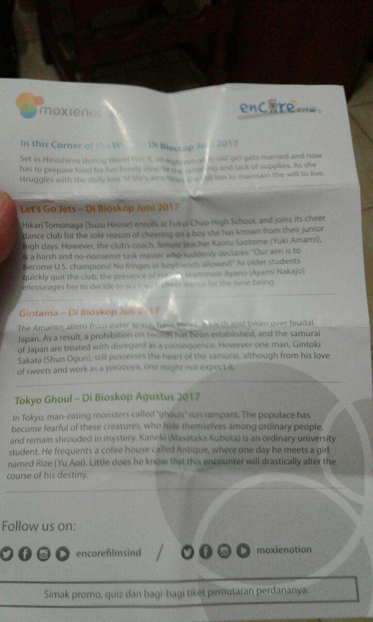 Belakangan terungkaplah bahwasanya film ini akan hadir di Indonesia, juga pada bulan Juli 2017 mendatang. Hal ini terungkap melalui brosur dari Encore Films/Moxienotion yang disebar pada perhelatan Ennichisai 2017 yang digelar pada 13-14 Mei 2017 di Blok M, Jakarta. Meskipun begitu, masih belum ada informasi lebih lanjut mengenai kehadiran film ini di Indonesia.