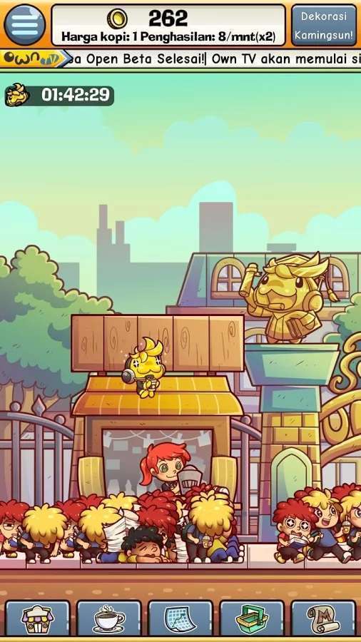 Sebagaimana telah diberitakan sebelumnya, Own Games, pengembang game asal Bandung yanng sukses dengan game Tahu Bulat ini akan segera merilis game terbaru mereka, yang kali ini berjudul Own Coffe Shop.