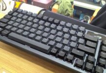 Keyboard gaming 65% berukuran ringkas yang menggabungkan tombol panah dan navigasi serta touch panel interaktif ke dalam bingkai 60%.